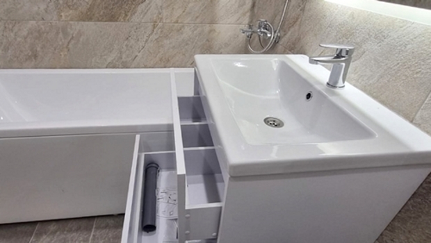 Акриловая ванная размером 170х70 или 180х70 с фронтальной и боковой декоративными пластиковыми панелями (плюс силикон или затирка в местах примыкания к стенам), либо там, где установка ванны невозможна, установка готовой душевой кабины;
