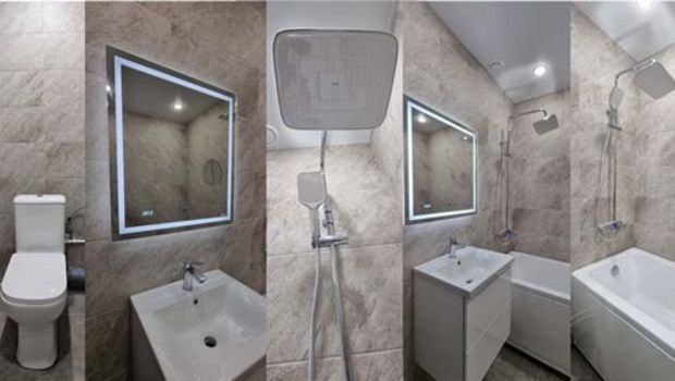 При наличии ванны, устанавливается душевая система со смесителем и тропическим душем;